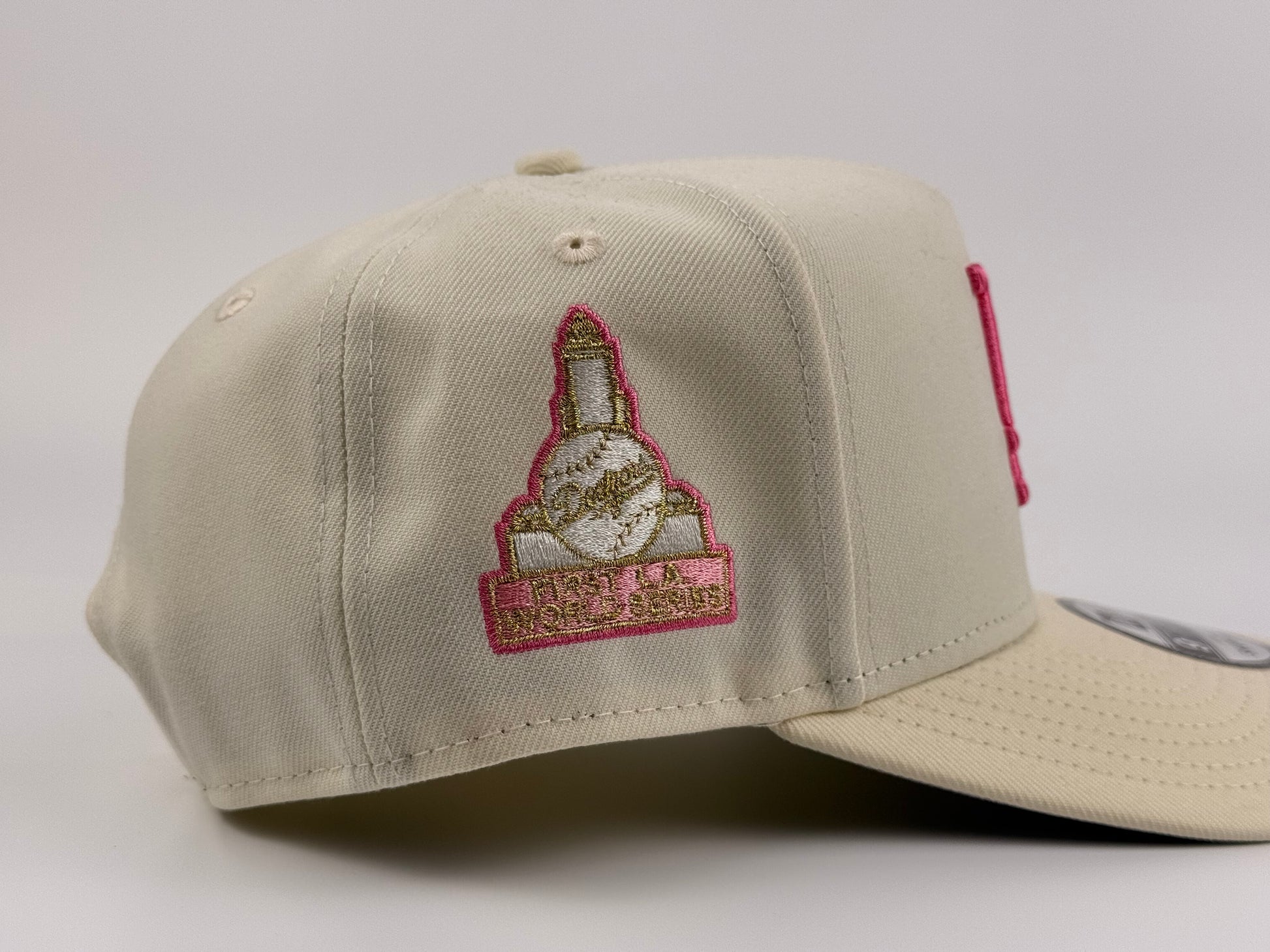Los Angeles Dodgers New Era Cap 9FIFTY A-Frame Snapback Hat Full Cream with Pink First World Series Side Patch