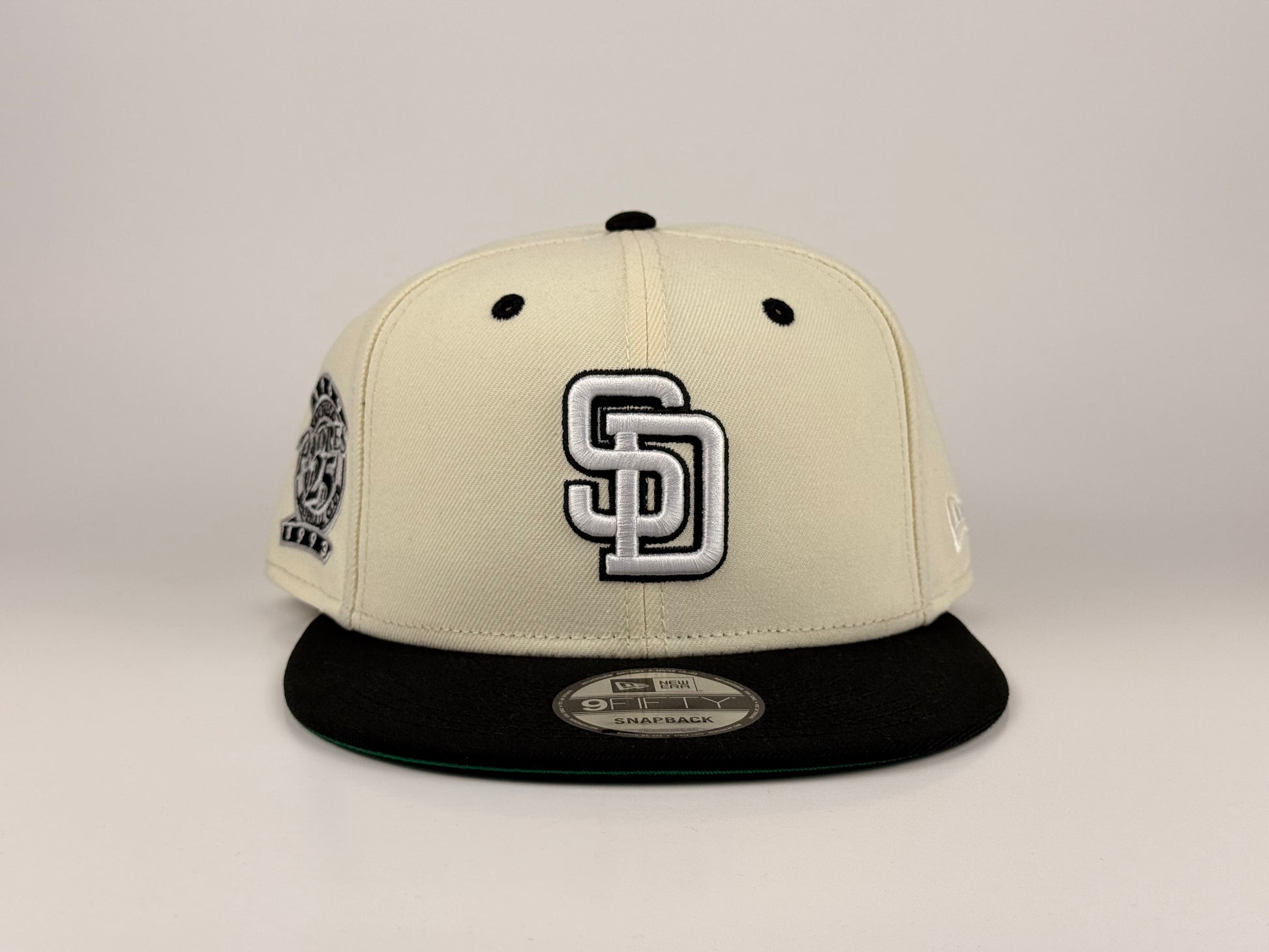 San Diego Padres MLB New Era Cap 9FIFTY Snapback Hat Cream Crown Black Visor 25th Anniversary Side Patch