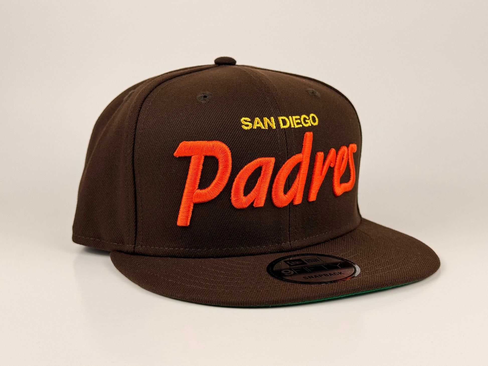 San Diego Padres Script MLB New Era Cap 9FIFTY Snapback Hat Brown