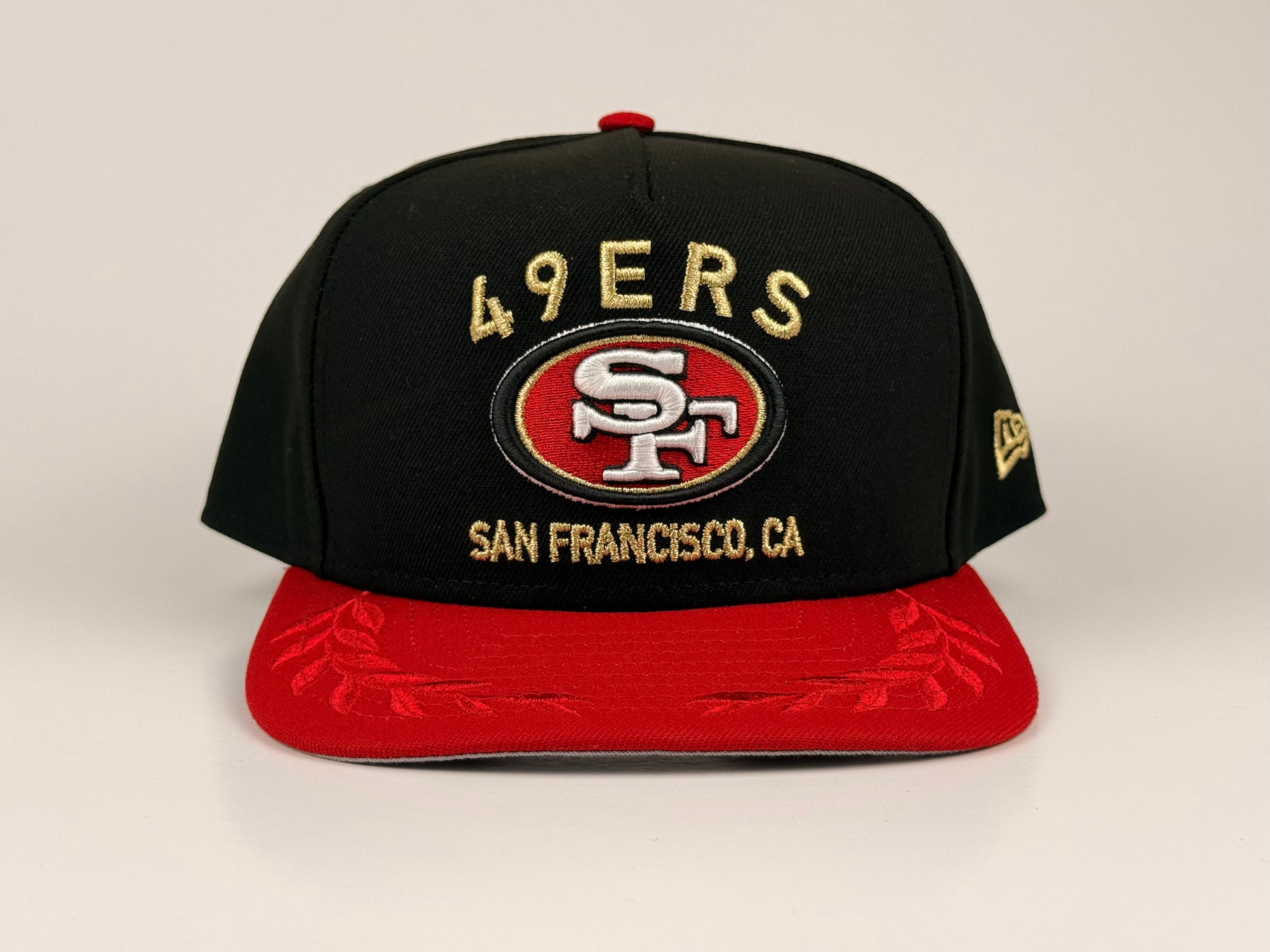 San Francisco 49rs New Era Cap 9FIFTY A-Frame Snapback Hat Black/Red Gold Stitch